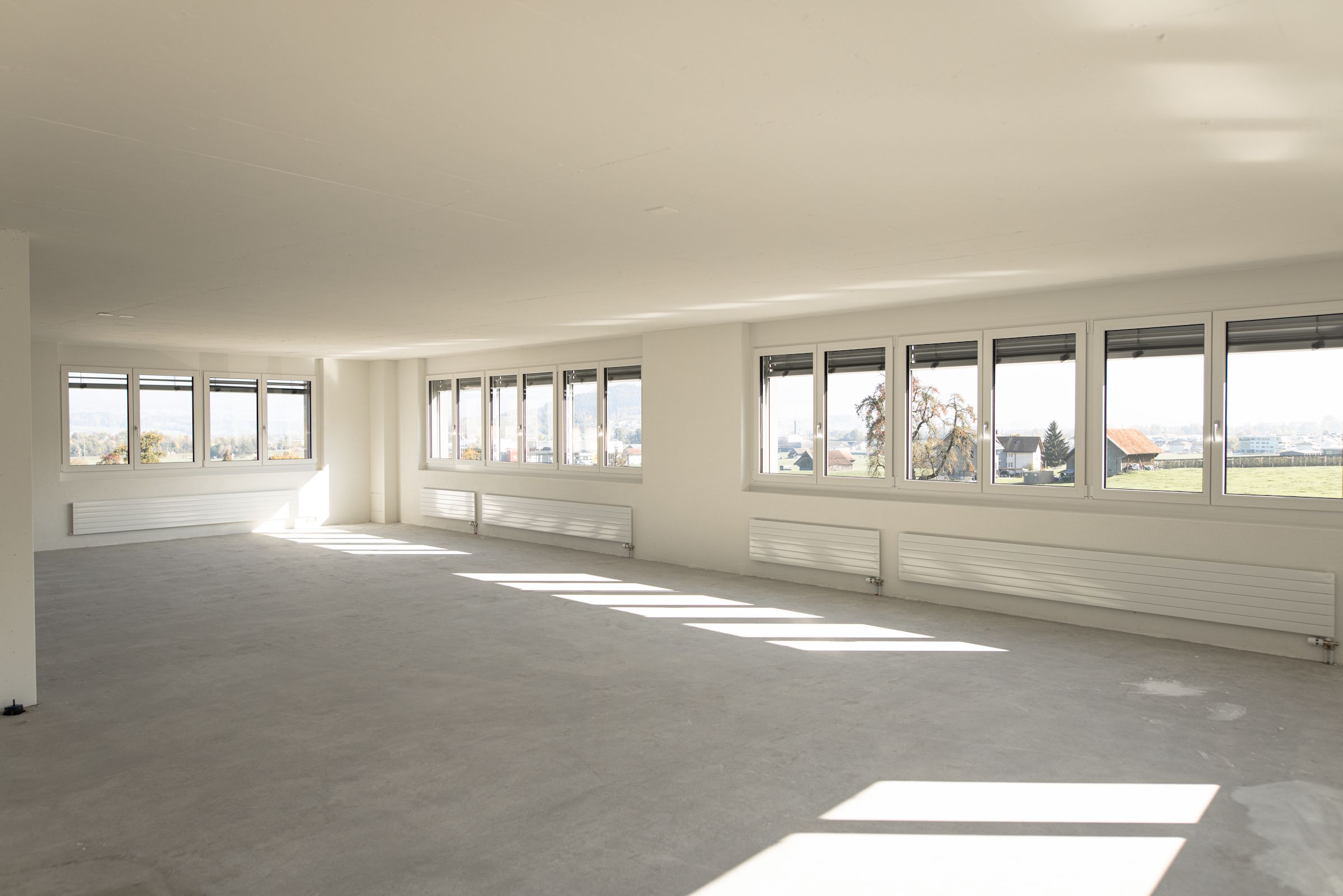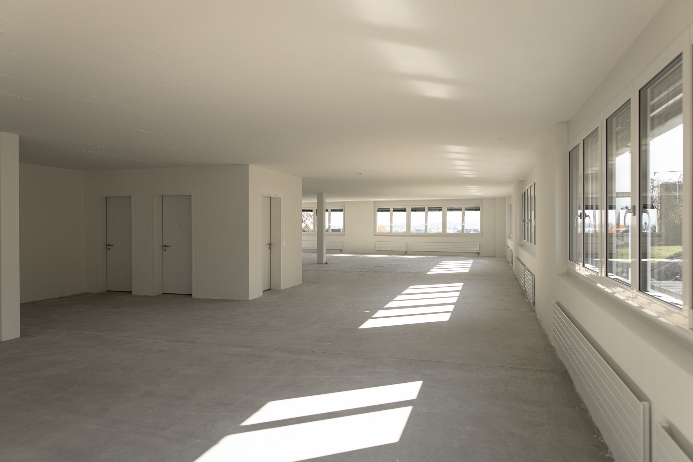 - Innen weisen die Gewerbeflächen offene und vielseitig nutzbare Grundflächen auf, welche ja nach Nutzungsanforderungen verschiedene Konzepte zulassen.