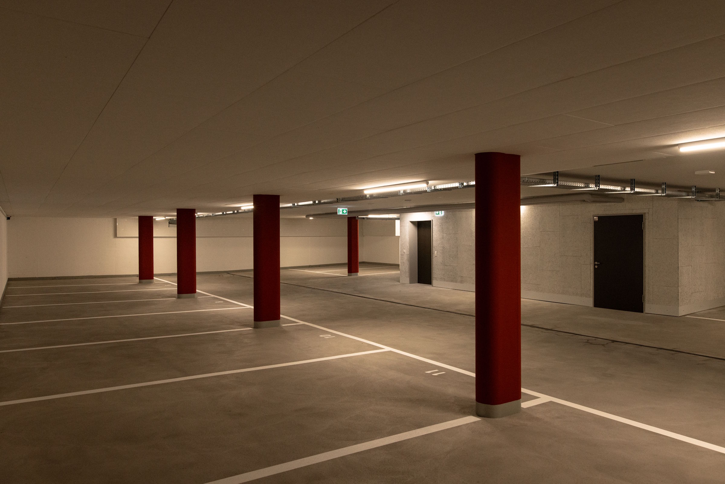 Im Aussenbereich stehen genügend Parkplätze für Besucher und Kunden zur Verfügung. In der separaten Tiefgarage können Parkplätze für Fr. 130.-/Monat gemietet werden.